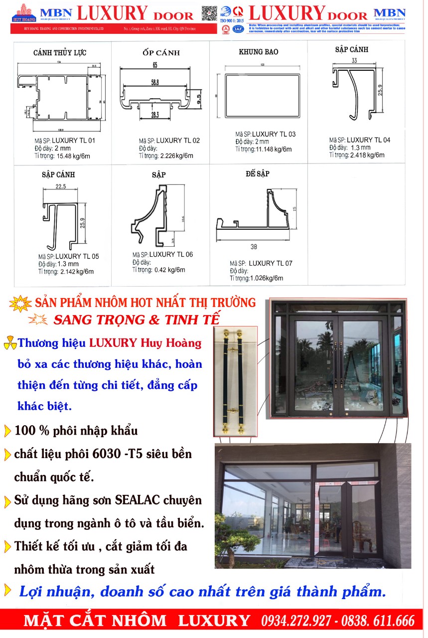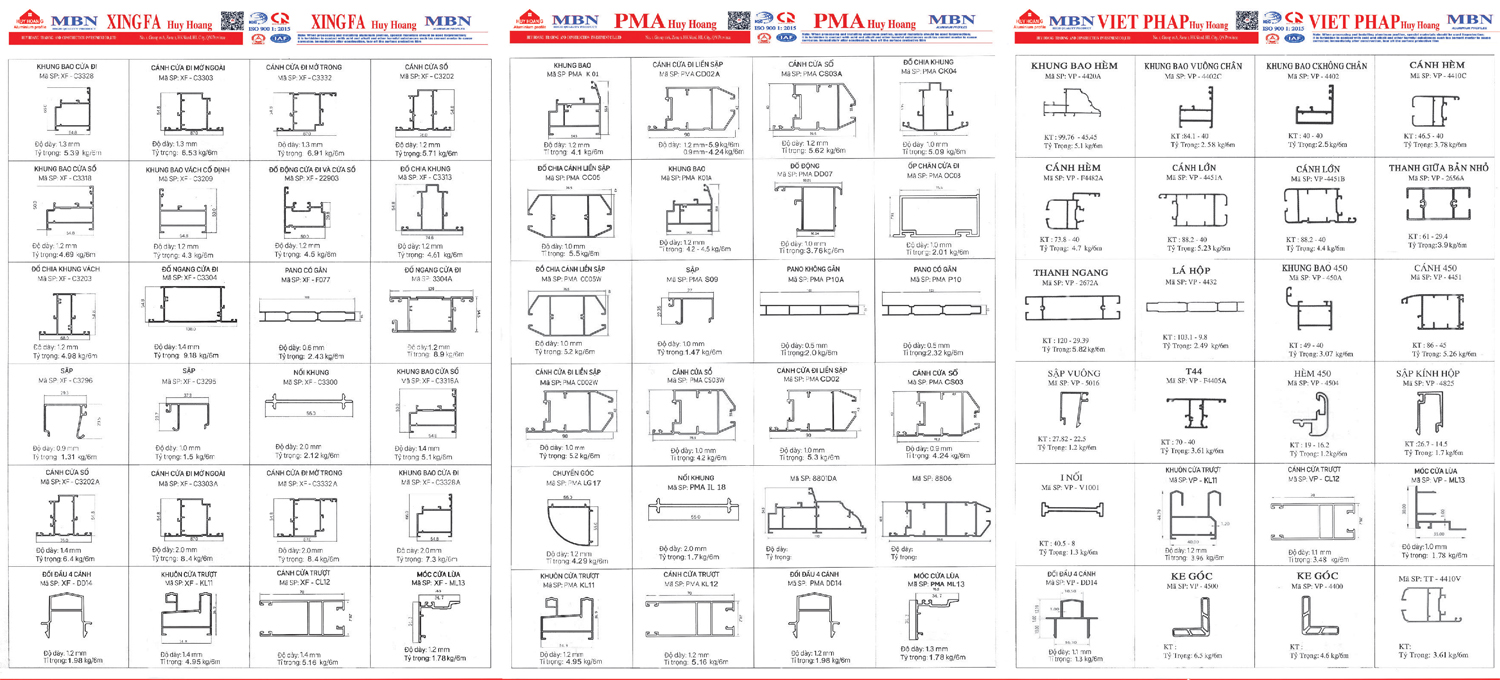 Nhôm Huy Hoàng nguyên bản có rất nhiều hệ, nhiều màu sắc tương ứng với nhiều loại cửa, nhiều kiểu mở nhưng ở Việt Nam thường sử dụng các hệ chính và màu sắc sau: