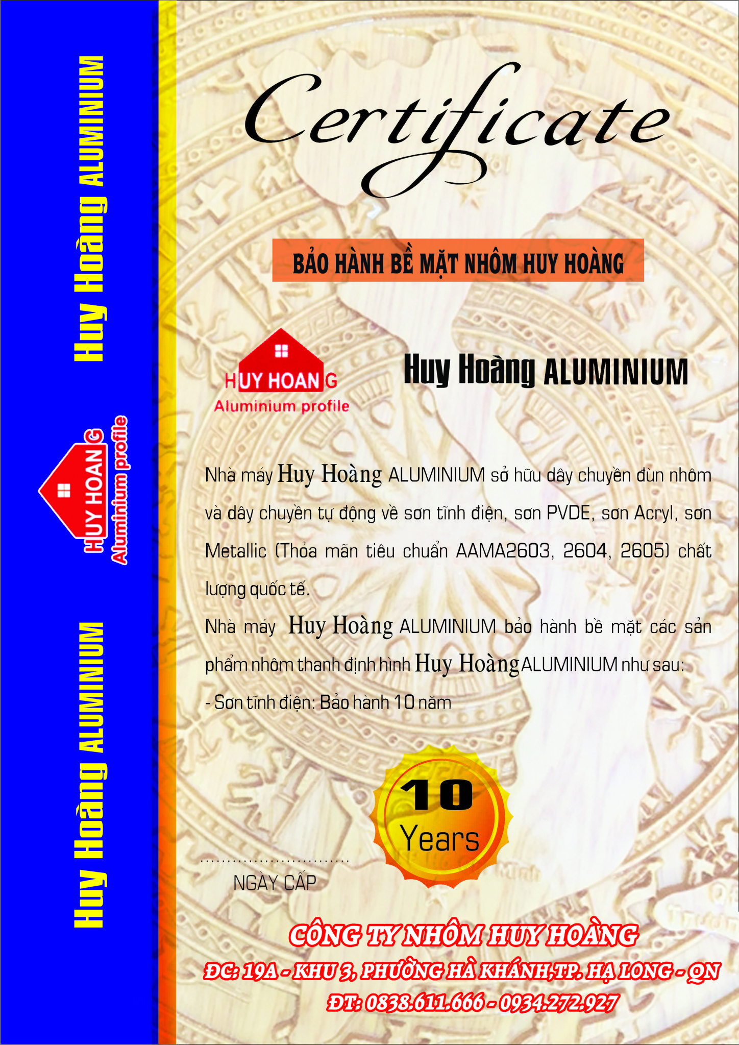 Nhôm Huy Hoàng là 1 trong 4 thương hiệu hàng đầu về các cấu kiện nhôm lắp ghép trong lĩnh vực xây dựng. Sản phẩm của Huy Hoàng đã xuất hiện trên thị trường đã có mặt trên khắp các tỉnh thành. Sản phẩm cửa nhôm tạo nên 1 sản phẩm chất lượng cao, thẩm mỹ, an toàn, giá thành phải chăng phù hợp cho các công trình biệt thự, nhà phố, chung cư cao cấp.